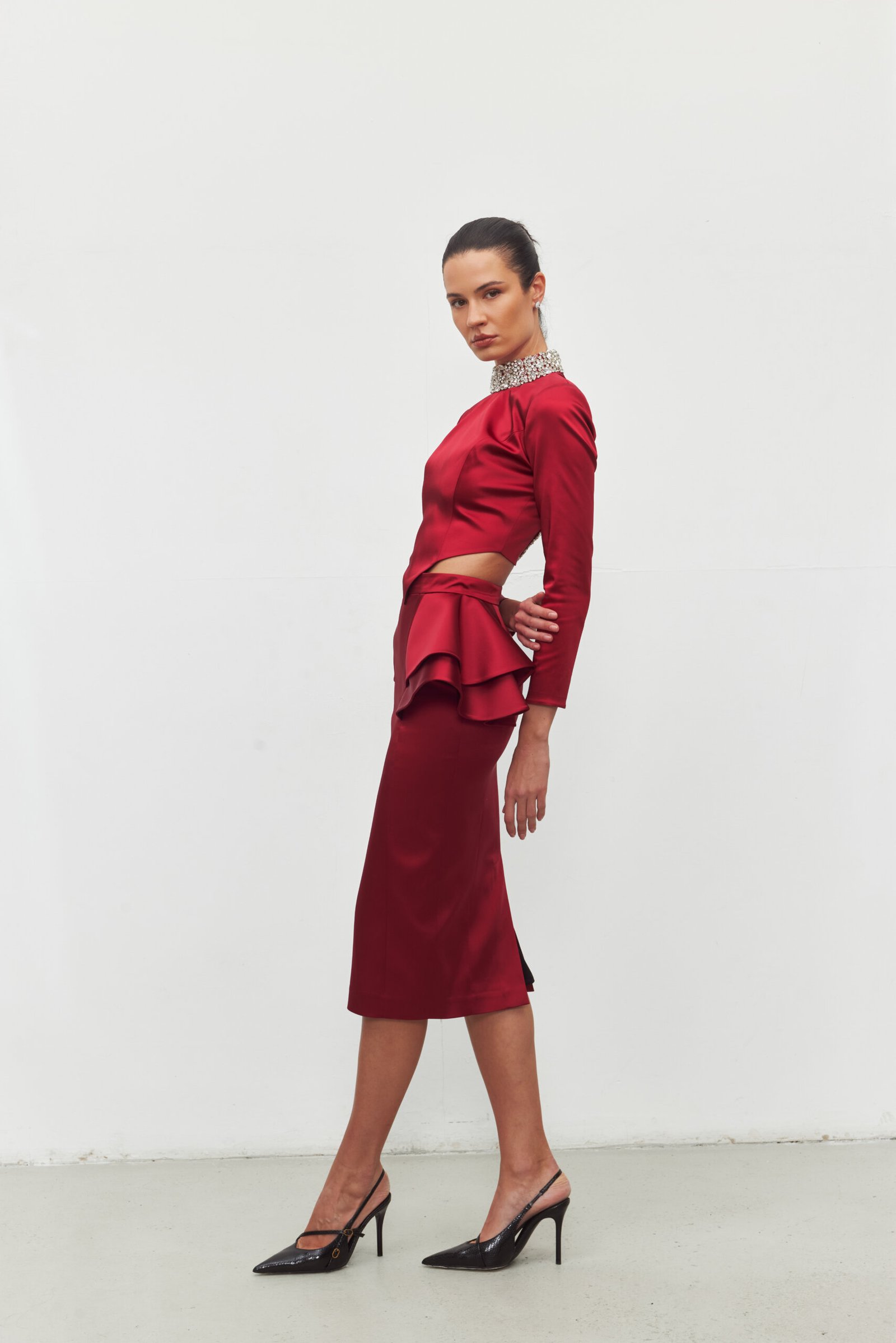 Crimson Peplum Etek